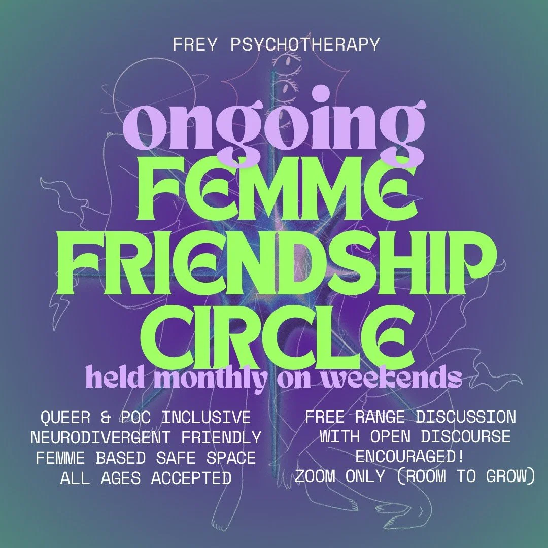 A support group for women and femmes looking for connection, friendship, and support. Facilitated by a peer with lived experience as a mentally ill queer woman, this group is meant for processing, sharing, and learning from each other. If you are looking for deep friendship, and/or looking to discuss friendships, relationships, and everything that goes with it; this group is for you.